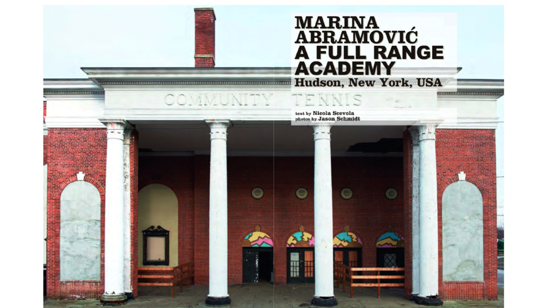 La scritta che campeggia sulla facciata dice Tennis Academy, ma le imponenti colonne di legno bianco ricordano quelle di una chiesa. E la temperatura all’interno della palazzina di mattoni fa pensare ad una cella frigorifera. “Benvenuti nella futura sede del mio istituto”, dice Marina Abramovic spalancando le porte d’ingresso nella speranza di far entrare un poco di aria tiepida dall’esterno. Tre anni fa l’artista serba Leone d’oro alla Biennale di Venezia del ‘97 ha acquistato questa grande costruzione nel centro di Hudson, paese di settemila abitanti a due ore da New York. In passato la struttura è stata adibita a diversi scopi: teatro, cinema, scuola di tennis, deposito di mobili usati. Ora è vuota, priva di riscaldamento e piuttosto fatiscente. Ma presto Abramovic conta di trasformarla in un istituto per la conservazione e lo sviluppo delle Performing Art, espressione artistica di cui è considerata la massima esponente vivente. “Vorrei che questo posto diventasse come la Factory di Andy Warhol, ma senza le droghe”, dice passeggiando nella hall semibuia che un tempo conteneva il palcoscenico. “Non voglio creare un museo per le mie opere, ma un centro per dare spazio a giovani performers”. Hudson potrebbe essere il luogo giusto. Negli ultimi trent’anni questo sonnolento villaggio sulle rive dell’omonimo fiume ha attraversato una crisi che fatto crollare i prezzi delle case, rendendo disponibili spazi a buon mercato. Dagli anni Novanta si è sviluppata una nutrita comunità gay. E oggi il paese è uno dei principali centri di scambio di mobili antichi e oggetti usati di design dello stato di New York. Il progetto di Abramovic è molto ambizioso. D'altronde se non fosse una visionaria, difficilmente l’artista sessantaquattrenne avrebbe potuto diventare uno dei nomi più importanti dell’arte contemporanea.