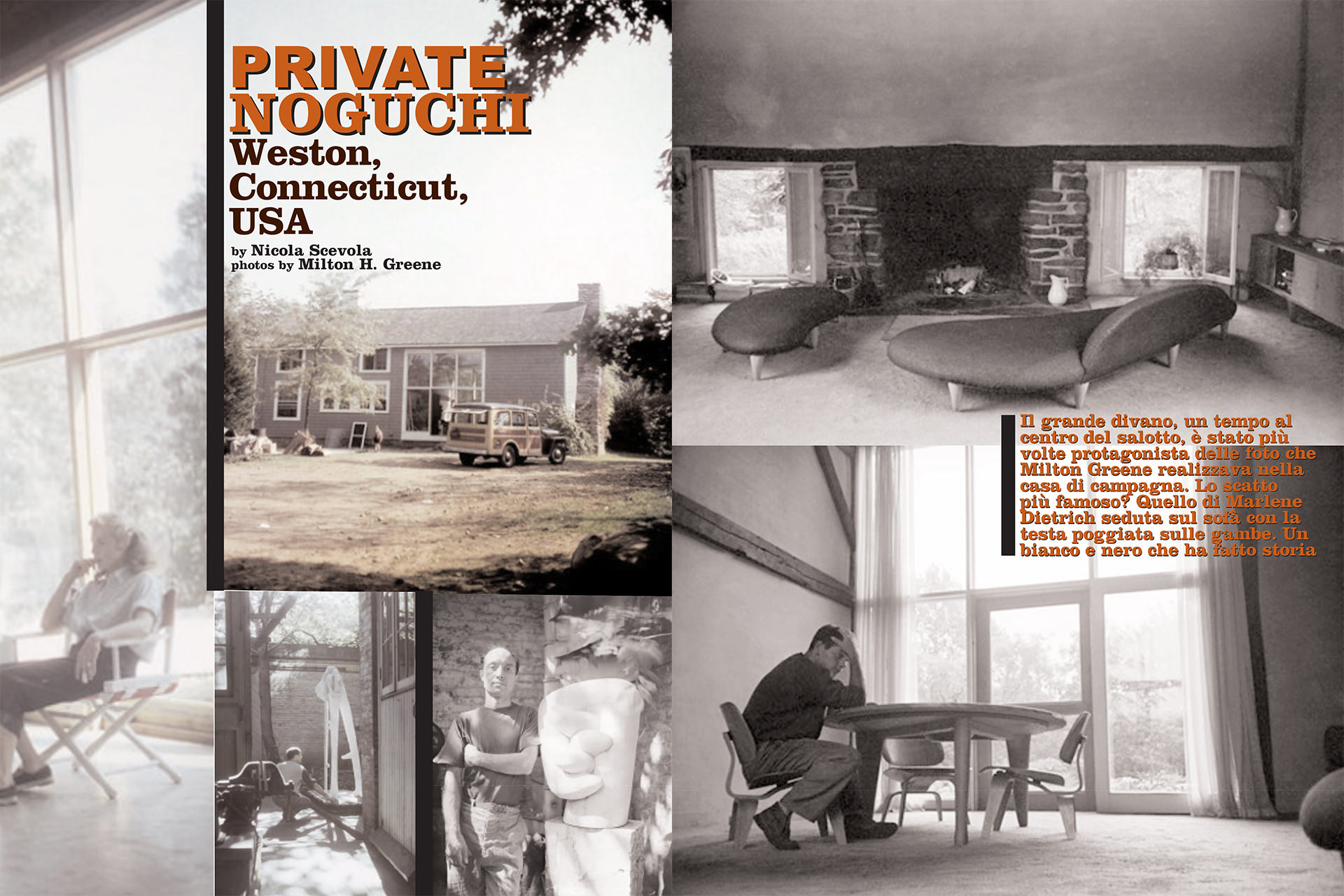 Dopo la guerra Greene, che cominciò la sua carriera come assistente di Louise Dahle-Wolfe, si era guadagnato la fama di “prodigio della foto a colori” e aveva cominciato a collaborare con le principali riviste di moda dei tempi, fra cui Vogue, Harper’s Bazaar e Life. Oltre che nello studio di New York, il fotografo amava ritrarre i suoi soggetti nella sua casa di campagna, che si trasformava spesso in un luogo di ritrovo di celebrità. Fu durante una di queste feste, nel Natale del 1952, che Greene incontrò la sua seconda moglie, Amy. Ai tempi lei faceva la modella ed era fidanzata con un altro maestro della fotografia, Richard Avedon. “E’ una di quelle rare storie di relazioni incrociate che hanno un lieto fine”, ricorda Joshua. “Fin da subito la mamma fu attratta da Milton, mentre Evelyn si innamorò di Richard [Avedon]. Ci misero circa un anno ad aggiustare le cose, ma alla fine lo scambio avvenne e furono tutti felici”. Amy, che poco dopo rimase in cinta di Joshua, aveva da poco superato la maggior età. Di carattere schivo, era astemia e non amava particolarmente feste e ritrovi. Era giovane ed insicura. E in un tentativo di imporre la sua personalità, obbligò il marito a cambiare tutti gli arredi della casa di Weston legati alla prima moglie. Fra questi c’erano i mobili disegnati da Noguchi, e in particolare un divano che il fotografo aveva usato spesso nei suoi shooting. “Su quel divano fu scattata una foto che è stata poi giudicata essere fra i 100 scatti più rappresentativi del secolo scorso: un’immagine di Marlene Dietritch per Life in cui l’attrice ha la testa appoggiata sulle gambe”, dice Joshua.